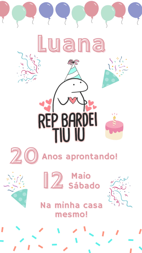 “Humor leve, traços simples e muita personalidade!” Este Convite Digital de Aniversário Flork traz desenho simples, fundo clean e expressões divertidas, perfeito para quem ama convites bem-humorados.